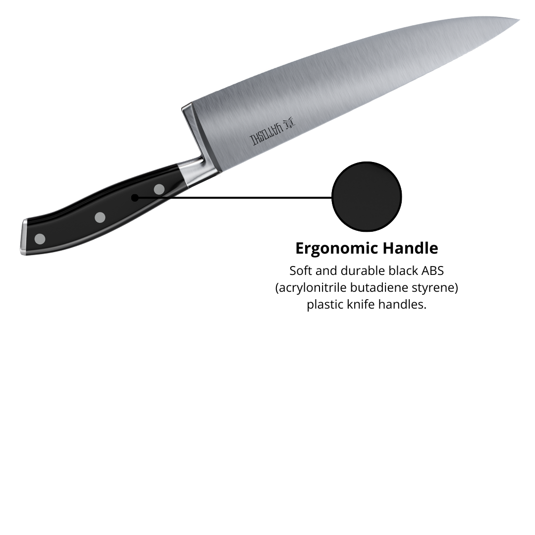 Our knives are crafted from premium high-carbon steel (7Cr17), delivering razor-sharp precision and professional-level quality right in your kitchen. With 0.6–0.75% carbon content, these blades are twice as tough as typical kitchen knives, ensuring lasting strength and reliability.