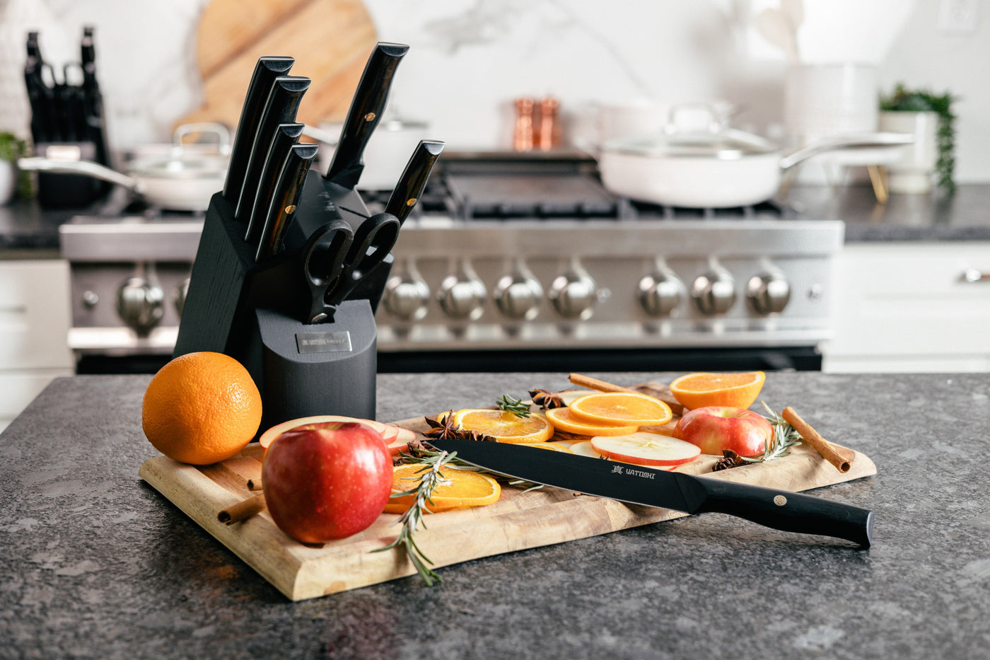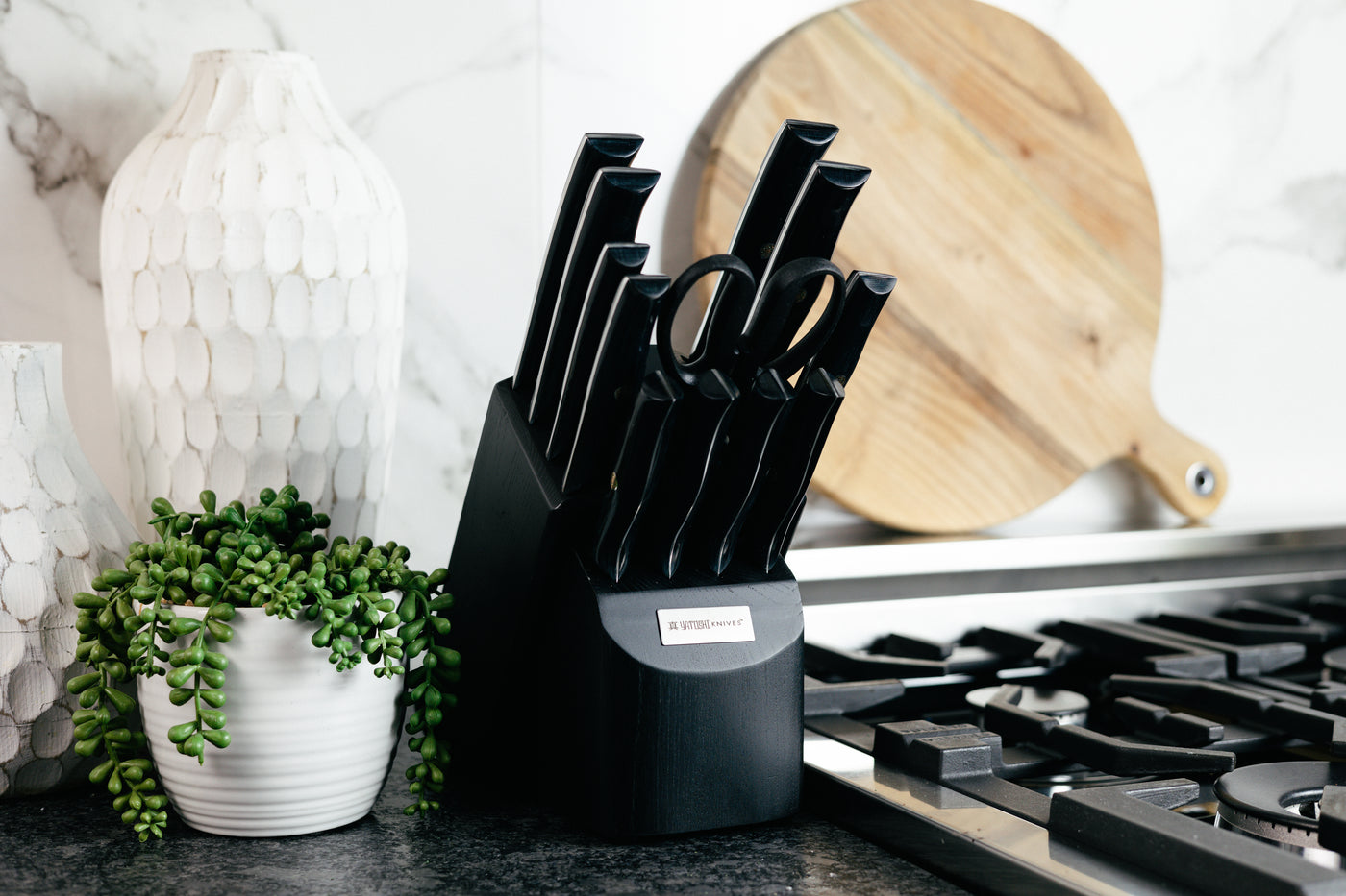 Onyx Black Kitchen Knife Block w/ Titanium Coating