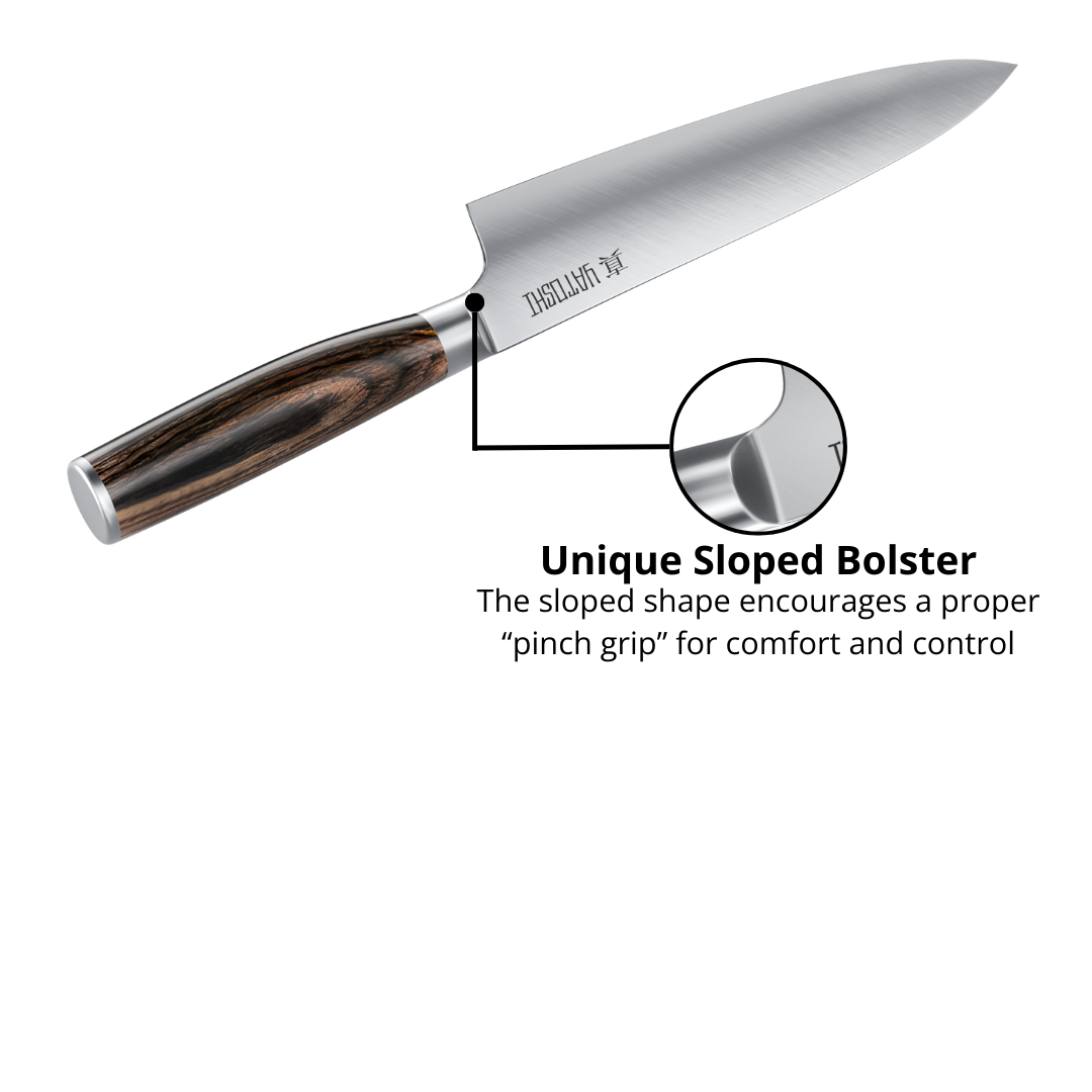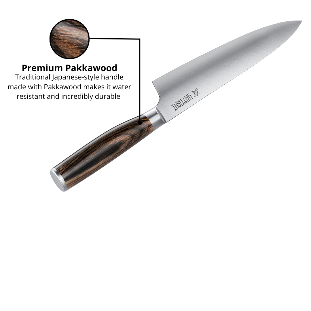 Each Japanese-inspired blade is precision-engineered for exceptional balance, a 15° cutting edge, and an impressive hardness of HRC58+, making every slice effortless and every cut a joy. Resistant to rust, corrosion, and stains, these knives stay as beautiful as they are sharp; meal after meal, year after year.
